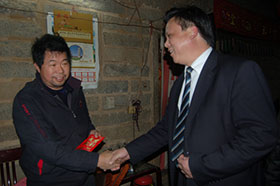 【本報訊】 “因為我們是一家人,相親相愛的一家人。”春節將至,為幫助困難同仁們回家過上一個溫暖的新年,2月3日,股份公司總裁吳樂進等公司領導代表公司,為正在一線作業的130名困難員工送去了慰問金,共計8萬余元,將元旦“愛心募捐”中所籌集的來自各潯興同仁的愛心,親手傳遞到需要幫助的困難員工手中,希望這一份來自潯興大家庭的溫暖,能幫助他們度過一個愉快的新年。